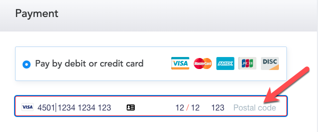 postal code on debit card visa